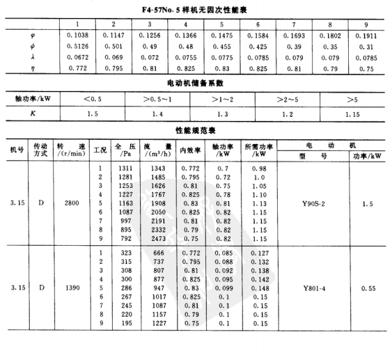 F4-57系列風(fēng)機參數(shù)表